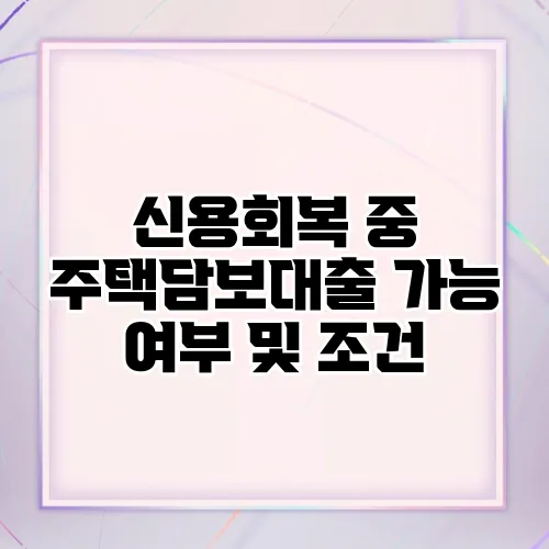 신용회복 중 주택담보대출 가능 여부 및 조건